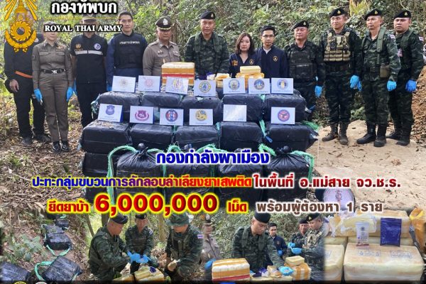 ข่าวยาเสพติด กองกำลังผาเมือง ปะทะกลุ่มขบวนการลักลอuลำเลียงยาเสพติด ยึดยาบ้า จำนวน 6,000,000 เม็ด ในพื้นที่ อำเภอแม่สาย จังหวัดเชียงราย admin2 weeks ago01 min Read More