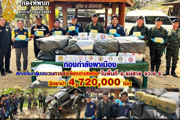 ข่าวยาเสพติด กองกำลังผาเมือง สกัดกั้นกลุ่มขบวนการลักลอบลำเลียงยาเสพติด ยึดยาบ้า จำนวน 4,720,000 เม็ด ในพื้นที่ อำเภอแม่สาย จังหวัดเชียงราย admin5 days ago01 min Read More