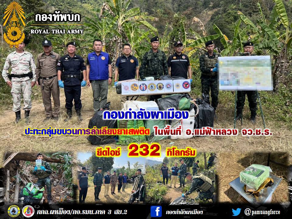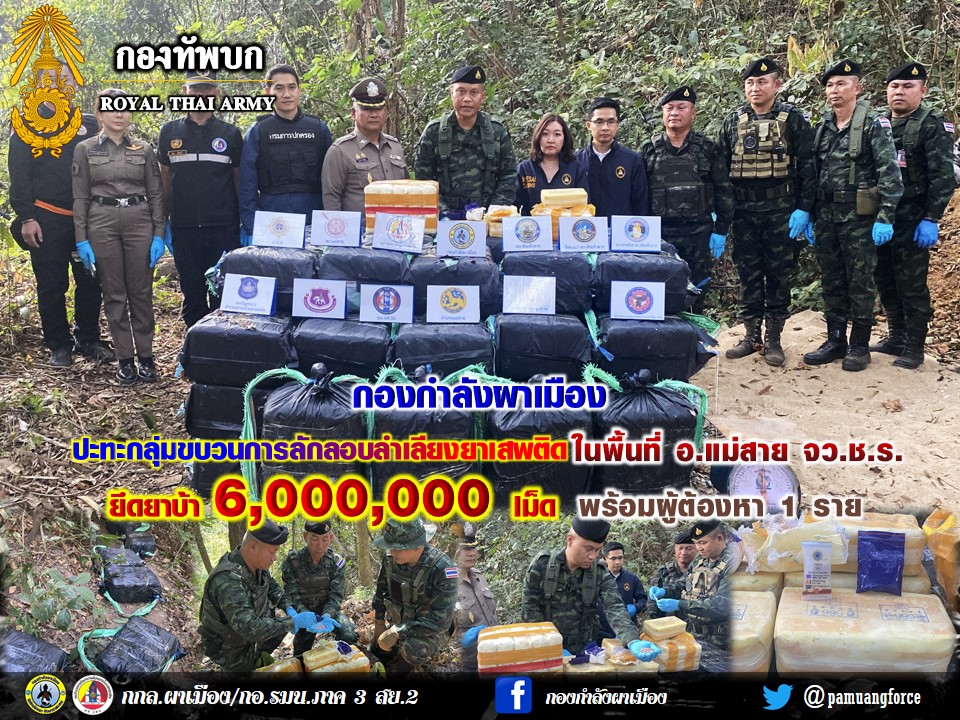 กกล.ผาเมือง ปะทะกลุ่มขบวนการลำเลียงยาเสพติด ยึดยาบ้า 2,500,000 เม็ด ในพื้นที่ อ.ฝาง จ.เชียงใหม่