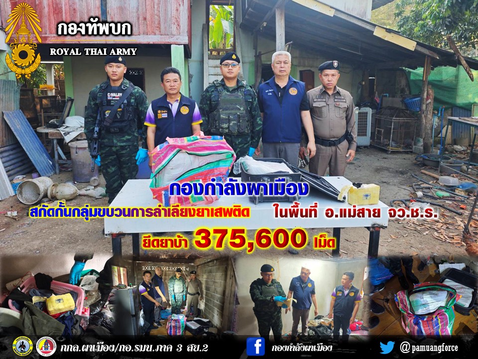 กองกำลังผาเมือง ปะทะกลุ่มขบวนการลักลอบลำเลียงยาเสพติด ยึดยาบ้า จำนวน 300,000 เม็ด ในพื้นที่ อำเภอแม่ฟ้าหลวง จังหวัดเชียงราย admin3 days ago 0