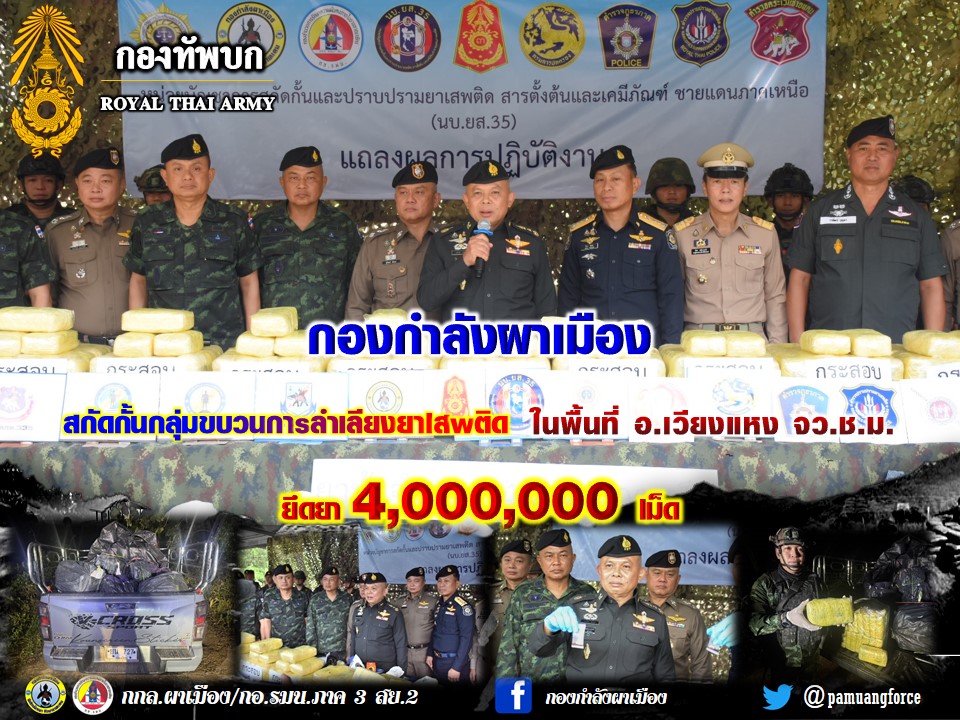 กองกำลังผาเมือง ปะทะกลุ่มขบวนการลักลอบลำเลียงยาเสพติด ยึด ยาบ้า จำนวน 200,000 เม็ด ในพื้นที่ อำเภอฝาง จังหวัดเชียงใหม่ admin3 days ago 0