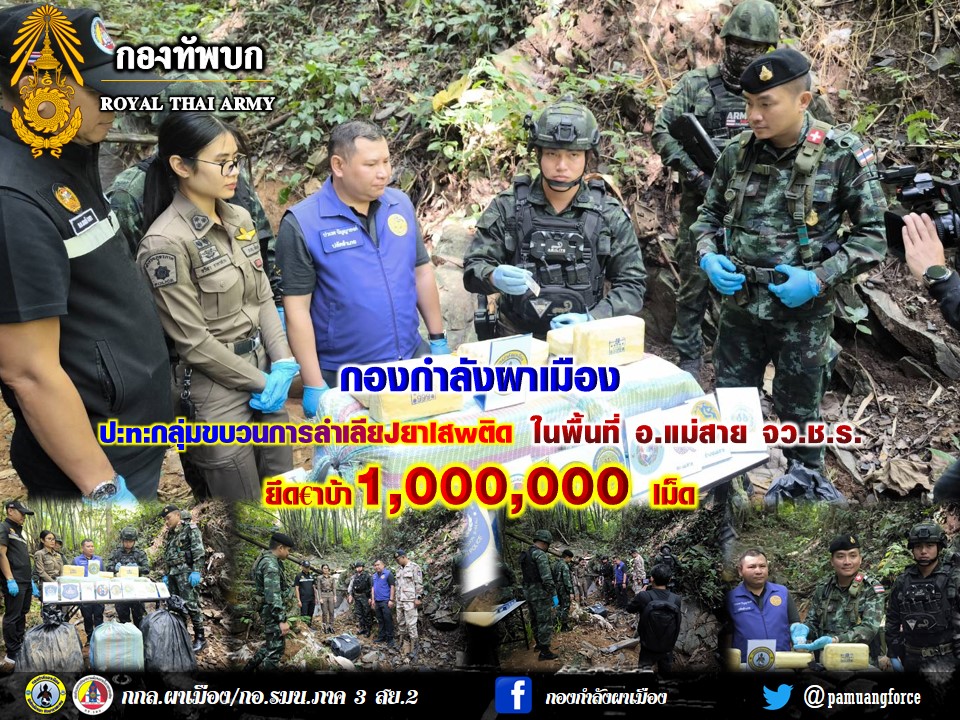 กองกำลังผาเมือง ปะทะกลุ่มขบวนการลักลอบลำเลียงยาเสwติด ยึดยาu้า จำนวน 7,200,000 เม็ด ในพื้นที่ อำเภอแม่สาย จังหวัดเชียงราย admin1 week ago 0