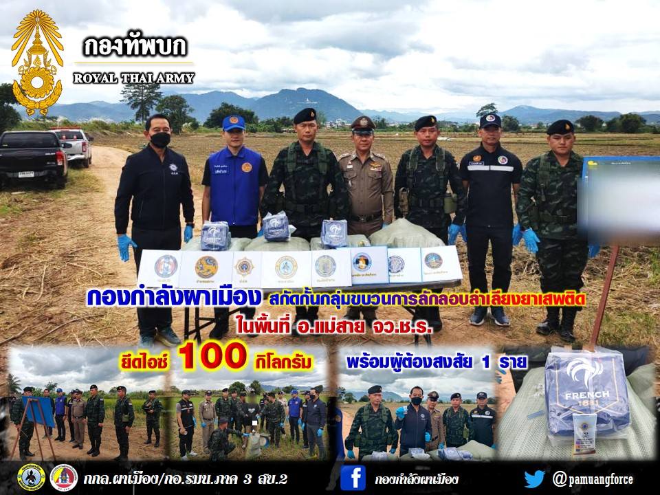 ข่าวยาเสพติดกองกำลังผาเมือง สกัดกั้นกลุ่มขบวนการลักลอบลำเลียงยาเสพติด ยึดไอซ์ จำนวน 100 กิโลกรัม ในพื้นที่ อำเภอแม่สาย จังหวัดเชียงราย admin21 hours ago01 min Post navigation Previous: กองกำลังผาเมือง ปะทะกลุ่มขบวนการลักลอบลำเลียงยาเสwติด ยึดยาu้า จำนวน 7,200,000 เม็ด ในพื้นที่ อำเภอแม่สาย จังหวัดเชียงราย